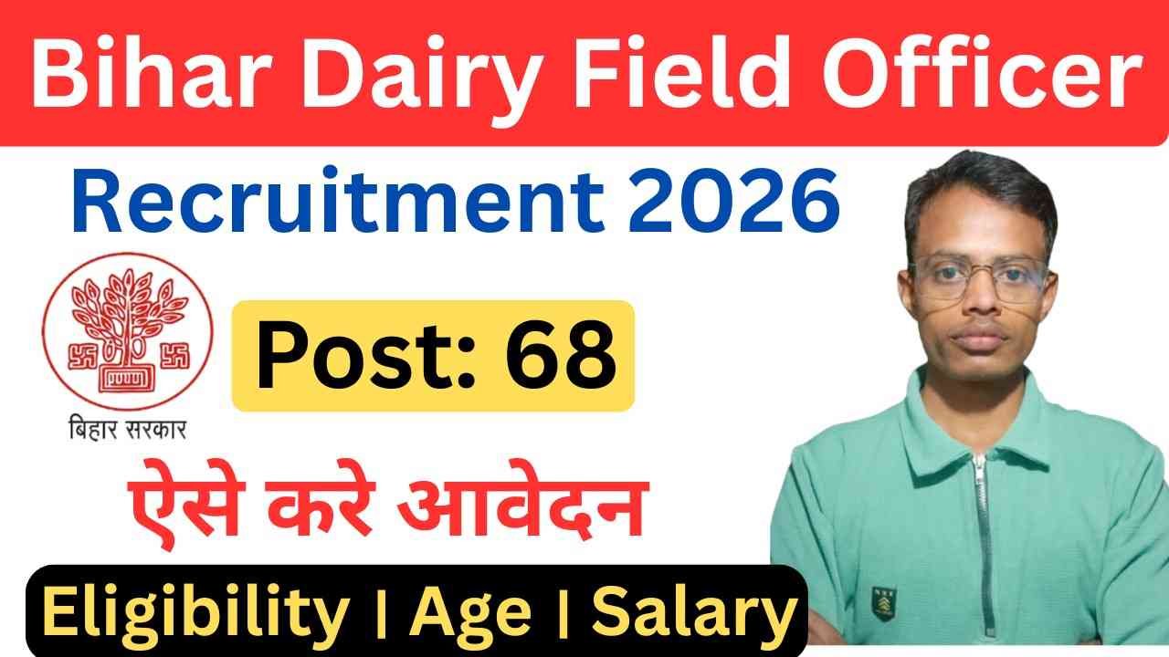 इस लेख में आपको Bihar Dairy Field Officer Recruitment 2026 से सम्बन्धित सभी महत्वपूर्ण जानकारी जैसे पदों का विवरण, योग्यता, आयु सीमा, चयन प्रक्रिया, आवेदन शुल्क और आवेदन करने की पूरी प्रक्रिया विस्तार से बताएंगे।