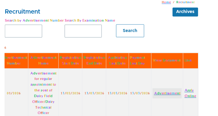 - क्लिक करने के बाद Dairy Field Officer Recruitment 2026 का नोटिफिकेशन दिखेगा।