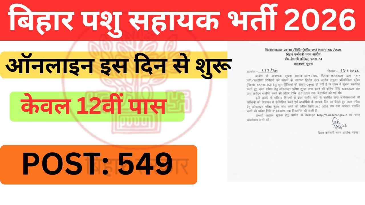 Bihar Pashu Sahayak bharti 2026: बिहार में होगी 549 पदों पर भर्ती, यहाँ जानें
