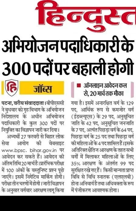 BPSC APO Recruitment 2026: अगर आप बिहार में सरकारी नौकरी की तैयारी कर रहे है और विशेष रूप से Law के क्षेत्र में सरकारी नौकरी करना चाहते है तो, आपके लिए बेहद शानदार मौका होने वाला है। बिहार लोकसेवा आयोग (BPSC) ने गृह विभाग के अंतर्गत अभियोजन पदाधिकारी (Assistant Prosecution Officer- APO) के कुल 300 पदों पर बहाली की जाएगी, जिसकी आधिकारिक नोटिफिकेशन जारी के दिया गया है । इस भर्ती के जरिए उम्मीदवारों को राज्य सरकार के दायरे में काम करना होगा।