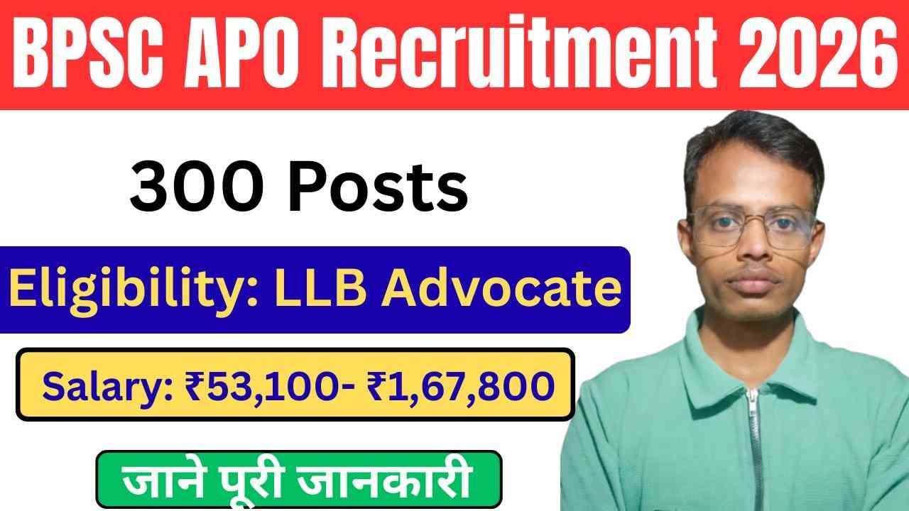 BPSC APO Recruitment 2026: अगर आप बिहार में सरकारी नौकरी की तैयारी कर रहे है और विशेष रूप से Law के क्षेत्र में सरकारी नौकरी करना चाहते है तो, आपके लिए बेहद शानदार मौका होने वाला है। बिहार लोकसेवा आयोग (BPSC) ने गृह विभाग के अंतर्गत अभियोजन पदाधिकारी (Assistant Prosecution Officer- APO) के कुल 300 पदों पर बहाली की जाएगी, जिसकी आधिकारिक नोटिफिकेशन जारी के दिया गया है । इस भर्ती के जरिए उम्मीदवारों को राज्य सरकार के दायरे में काम करना होगा।