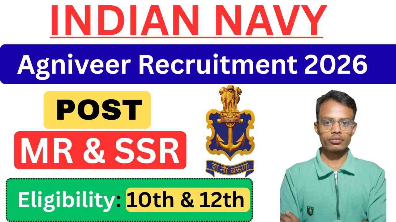 यदि आप Indian Navy में Job करने का सपना देख रहे है तो आपके लिए एक बेहतरीन मौका साबित होने वाला है। Indian Navy Agniveer MR SSR Recruitment 2026 के लिए ऑफिसियल नोटिफिकेशन जारी के दिया गया है। इस भर्ती के जरिए Agniveer MR और Agniveer SSR के पदों पर नियुक्त की जाएगी। जो उम्मीदवार इच्छुक है बे ऑनलाइन के माध्यम से आवेदन कर सकते है।
