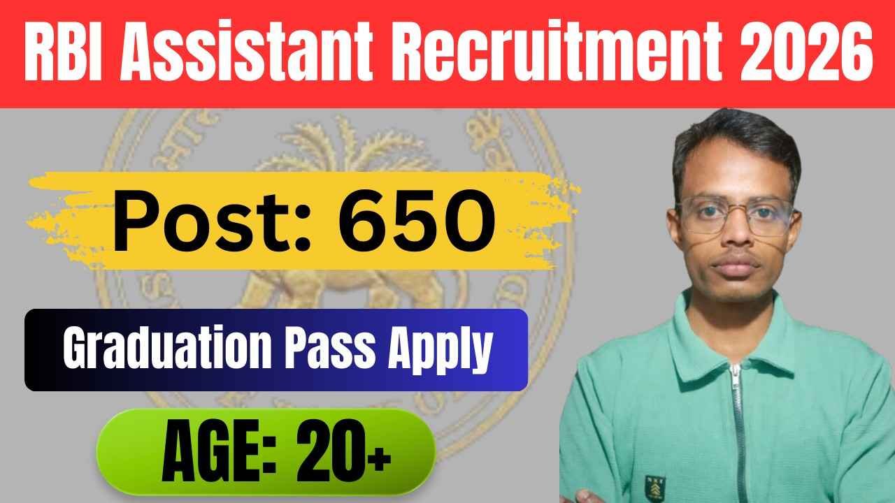 Reserve Bank of India (RBI) ने Assistant पदों के लिए 650 रिक्तियां निकली है। इस भर्ती के माध्यम से देशभर के विभिन्न RBI कार्यालयों में योग्य उम्मीदवार की बहाली की जाएगी। RBI Assistant Apply 2026 के लिए आवेदन करने की प्रक्रिया आज से शुरू कर दी गई है जो आवेदन करने की अंतिम तारीख 08 मार्च 2026 तक ही रखा गया है।
